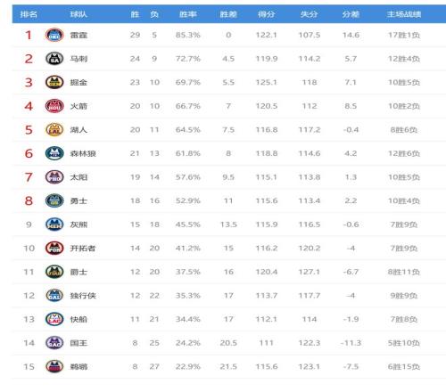 马刺赢球后24胜9负排名西部第二,领先第三的掘金1个胜场。