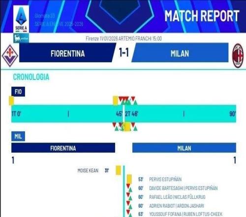 米兰圈北京时间22:00,意甲第20轮,米兰客场对阵佛罗伦萨。上半场,普利西奇两失单刀,德赫亚屡献神扑。下半场,科穆